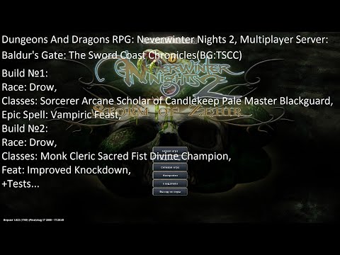 3226: Live-Stream, 362: Dungeons And Dragons RPG: Neverwinter Nights 2, Multiplayer Server: Baldur's Gate: The Sword Coast Chronicles(BG:TSCC), My Builds №1(11), №2(13) v.2, My Build № 1(11)(Armored-Spell-Caster): Race: Drow, Classes: Sorcerer (7) Arcane Scholar of Candlekeep (10) Pale Master (10) Blackguard (3)(Immunity: Critical Hits, Stun, Paralyse, High: AC, DC, Saves, Listen, Spot), My Build №2(13) v.2(Universal Skill Based Build: Melee-Stunner-Anti-Stunner, Damager, Speedy-Runner): Race: Drow, Classes: Monk (7) Cleric (3) Sacred Fist (10) Divine Champion (10)(High: AB, DMG, AC, DC, Saves, SR, Speed, Skills: Tumble, Listen, Spot, Move Silently, UMD\Use Magic Devices, Feats: Improved Knockdown, Stunning Fists, Immunity(By Spells): Knockdown, Critical Hits, Sneak\Death Attacks, Stun, Paralyse), (Kaedrin's PRC Pack), Leveling, Levels, 1: 22, 2: 21, 127(25.03.2021):